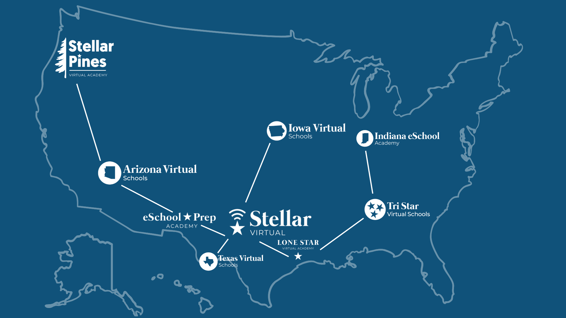 Stellar Virtual was founded in 2019 with a single school in Texas. Now, Stellar serves more than 40,000 students in eight public schools and our flagship private virtual school. Our logo tells our story: each student is a star in our constellation, while the WiFi symbol represents our dedication to connection and innovation.